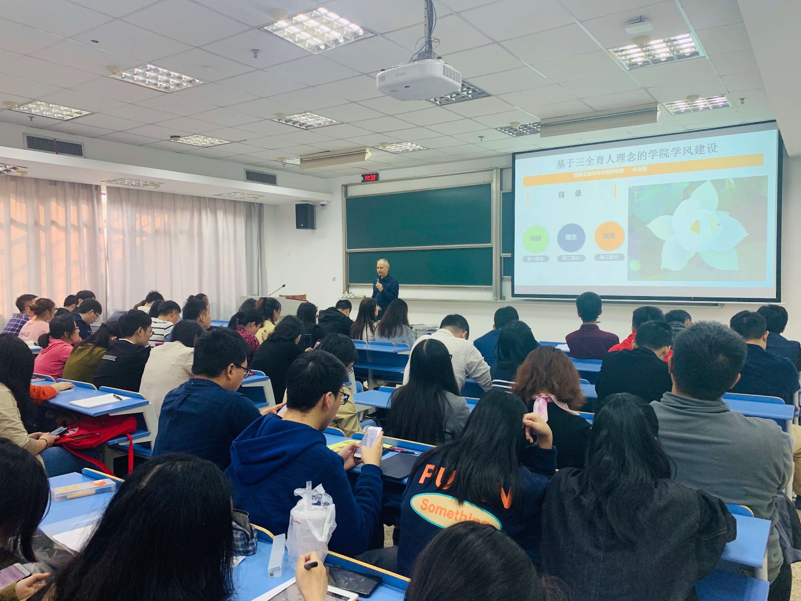 党委副书记许金根就“基于三全育人理念的学院学风建设”调研情况作主题发言,围绕学院学风建设的主要问题、理念及措施等交流了调研成果。许书记强调,做好“三全育人”工作要用好思想政治工作这一法宝,创新高校思想政治工作实施体系,积极践行“四有”、“四个领路人”、“四个相统一”要求。