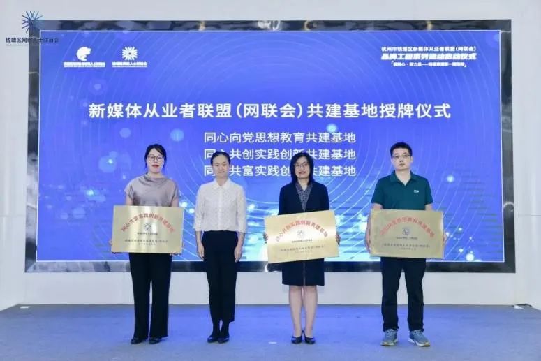 为更好地优化钱塘区网络人士服务,推动网络人士成长发展,会上授牌成立了数字文创、跨境电商、物流供应链三大同心共富服务团及同心向党思想教育、同心共创实践创新、同心共富实践创新三大共建基地。