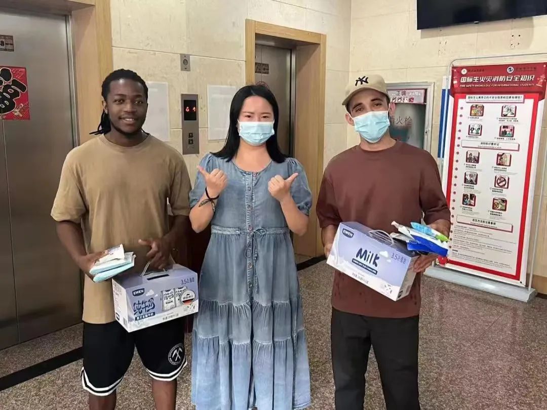 In order to ensure the 22 international students have a safe and happy National Day holiday, on the afternoon of September 30th, SME international student counselors Yu Rongfang (Rosa) and Ren Yi (Ronnie), and two class assistants Cao Xiangrui (Andrew) and Zheng Jinglin (Jacelynn), went to the international student dormitory in Jinshagang to pay a visit.