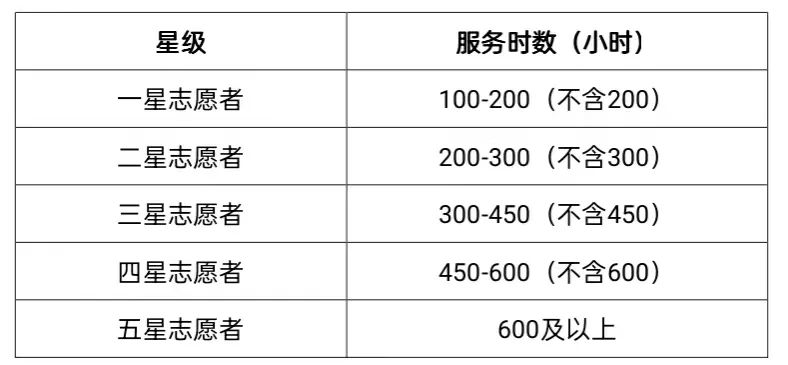 ②上一年度申请过星级志愿者的同学若本年度累计志愿时数未达更高一级星级志愿者评定标准不予重复评定。