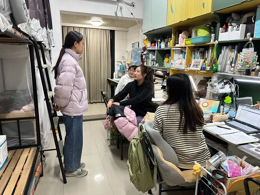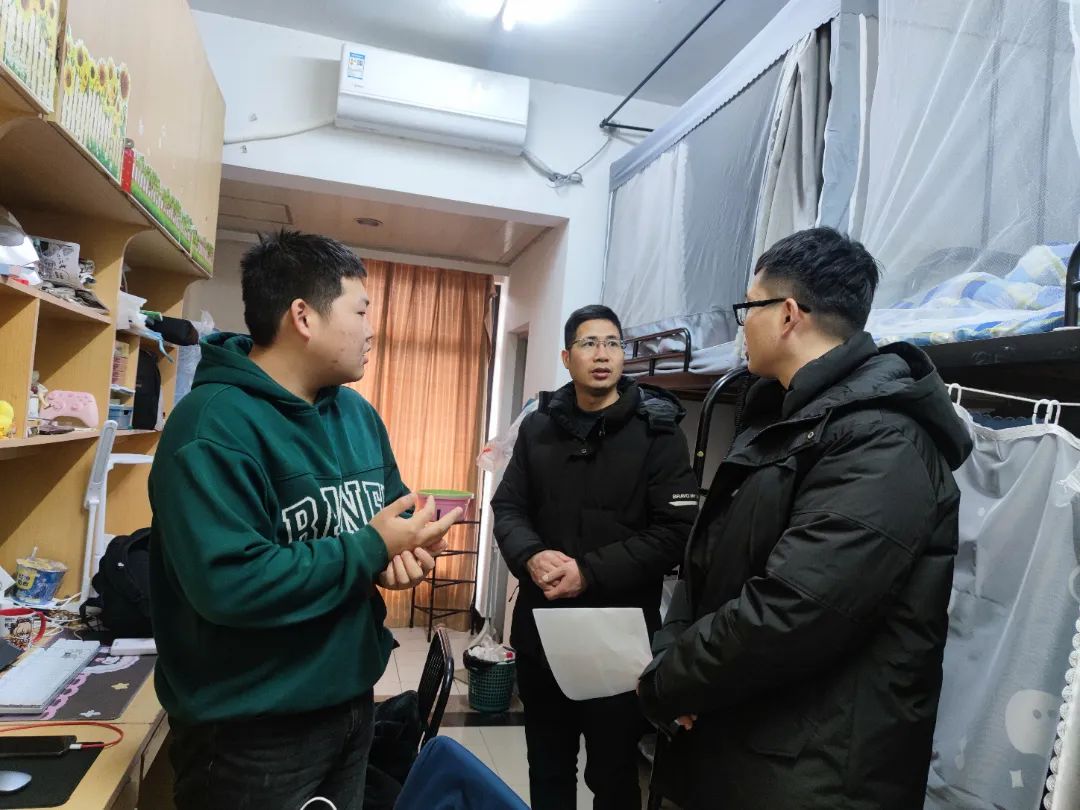 在走访过程中,学院老师与同学们亲切交流,了解学生需求,就学生到返校情况进行了详细核实,深入宿舍排查安全隐患,就宿舍安全问题及开学防诈骗注意事项进行交流,向同学们强调新学期仍要注意个人防护,增强自身抵抗力,保持身心健康,叮嘱同学们要尽快调整好作息和生活状态,养成良好的生活习惯,保持干净整洁的宿舍环境,以适应新学期校园生活,老师们还重点强调了诚信考试纪律,要求大家积极备考,诚信考试,提前做好学业规划。