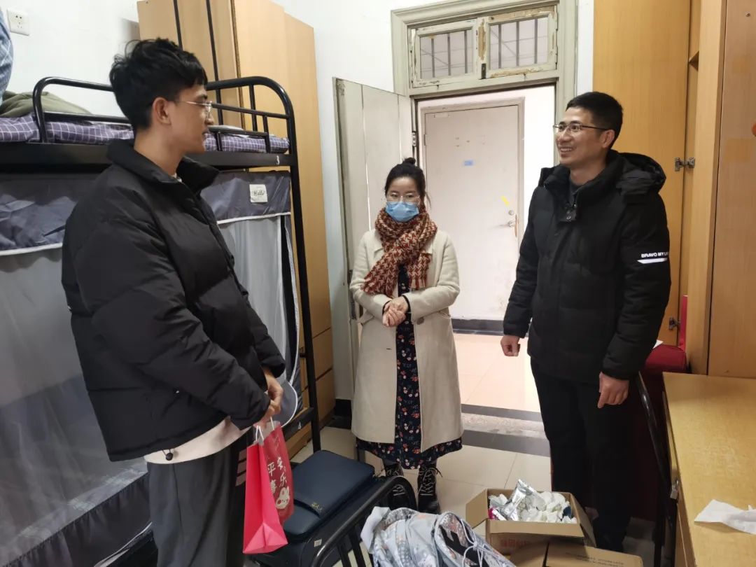 新年伊始,万象更新。伴随着连绵的细雨,管工学子陆续回到了学校。为进一步做好学生教育,管理,服务工作,及时了解学生返校情况和身心健康。学院党委副书记林瑜茂、团委书记叶福莲及各年级辅导员老师,深入学生宿舍,走访慰问返校学生,了解学生学习、生活及心理情况,给学生送去亲切的关怀与问候。
