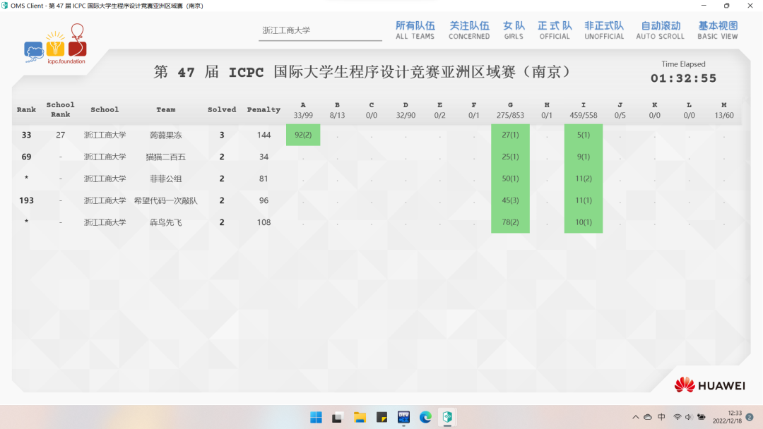 第47届ICPC国际大学生程序设计竞赛亚洲区域赛(南京)于2022年12月18日在PTA平台线上举行,共有来自258所高校的501支队伍同场竞技,其中正式队伍438支、非正式队伍63支。我校共5支队伍参赛,共获两银一铜,其中开车漫画 参赛队伍“蒟蒻果冻”荣获银奖(全国一等奖)。