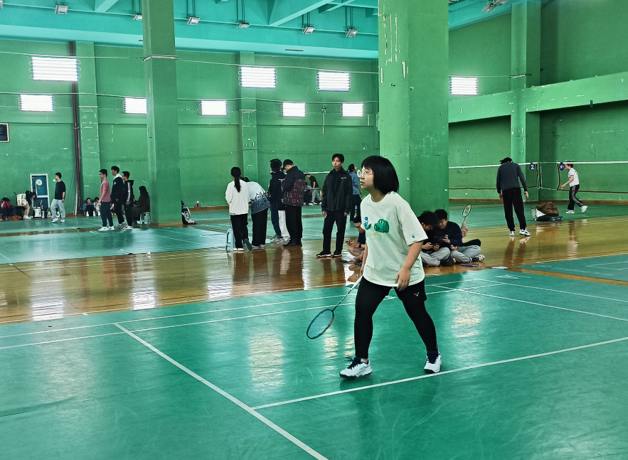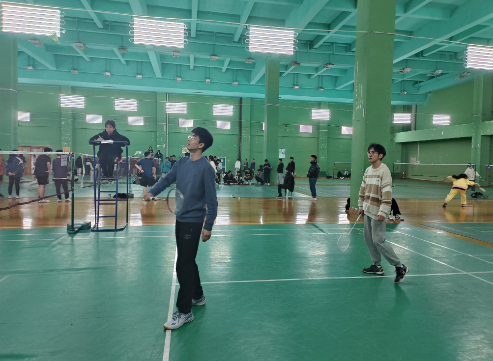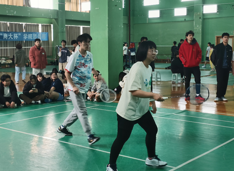 接下来是激动人心的决赛积分赛。在与信电学院的对阵中,男单施永浦、女单蔡姗姗展现了超强的实力。男双梅寒阳和韦世纪渐入佳境。女双温喆茜和陈心彤不惧劲敌。混双施永浦和蔡姗姗不负众望拿下比赛。