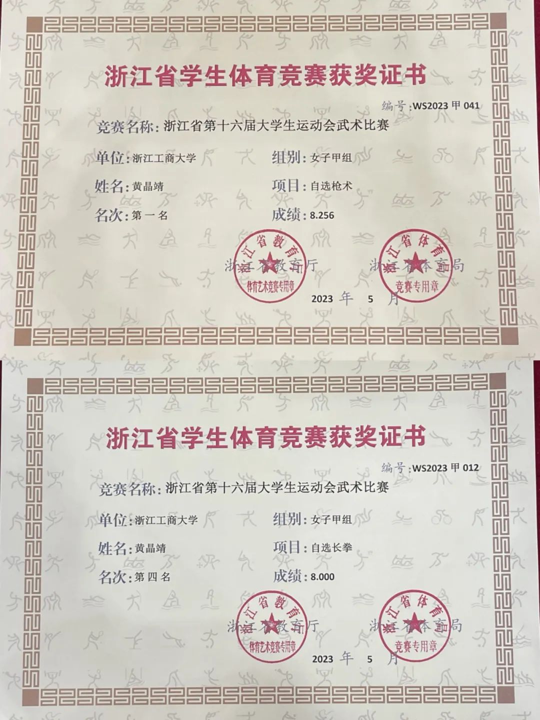 5月11至14日,我校武术代表队在吴雪霜老师的带领下,参加了由浙江省教育厅、浙江省体育局主办,宁波大学承办,浙江省学校体育协会大学武术分会协办的浙江省十六届大学生运动会武术比赛。