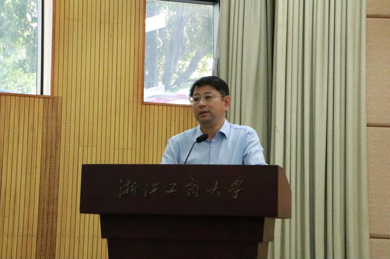商务创新2301班陈怡蒙同学代表本科新生发言,她号召大家用最美好的青春岁月,在浙工商坚持热爱、心怀感恩、坚定目标,以梦想作舟,勇闯急流险滩,以奋斗为笔,共谱璀璨新篇。