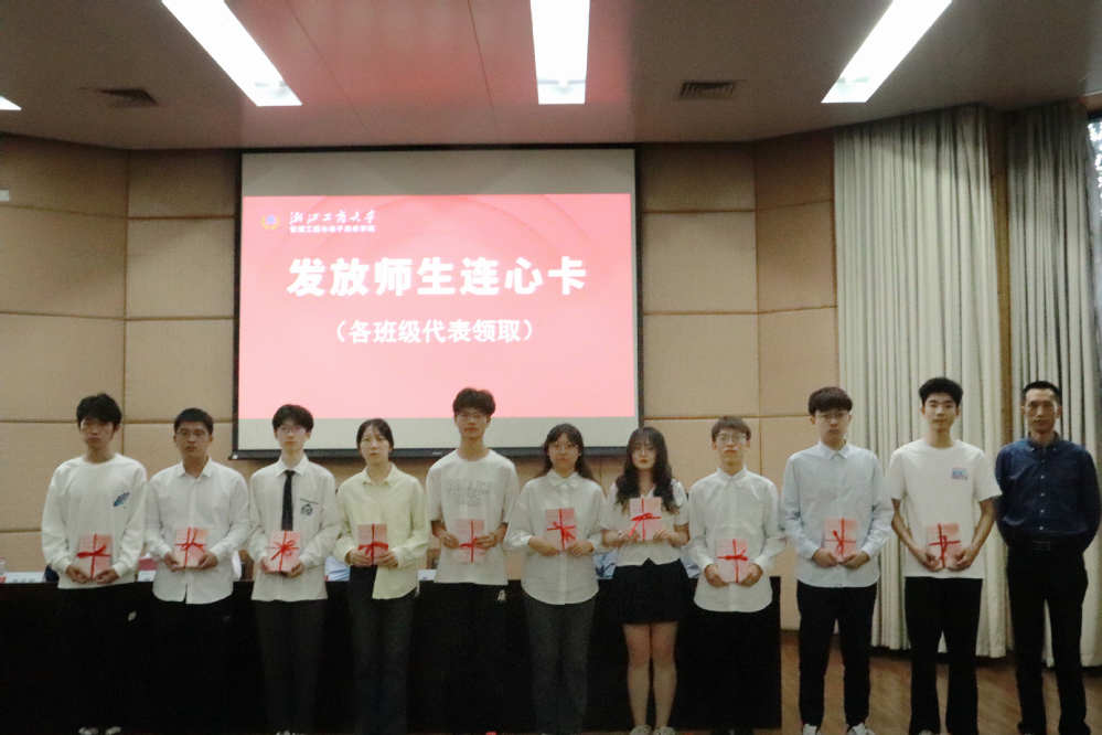 在大学生活期间,同学们可能会遇到很多的突发情况,有时候半夜身体不适去医院,有时候失恋无人倾诉,有时候家庭矛盾内心压抑,有时候学业受困无法自拔,为解决这些痛点,学院学工办辅导员精心制作了“师生连心卡”,为同学们提供了相关咨询电话和倾述通道,会上由学院副院长季敏向班级代表们发放“师生连心卡”。