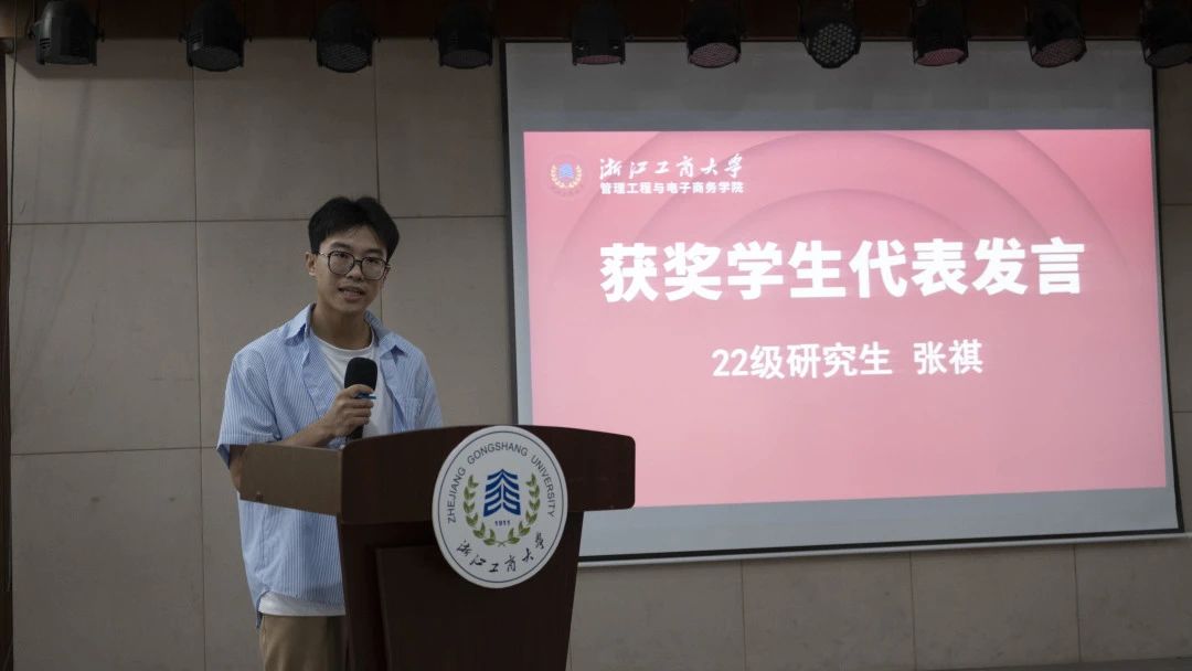 颁奖仪式后,学生代表张祺同学发表了感言。他深情地回顾了自入学以来的成长历程,对传化智联和学院的关怀与支持表示了衷心的感谢。张祺同学表示,这份荣誉不仅是对自己过去努力的肯定,更是对未来无限可能的期许。他呼吁全体同学珍惜机会,刻苦学习,为实现人生目标而不懈奋斗。