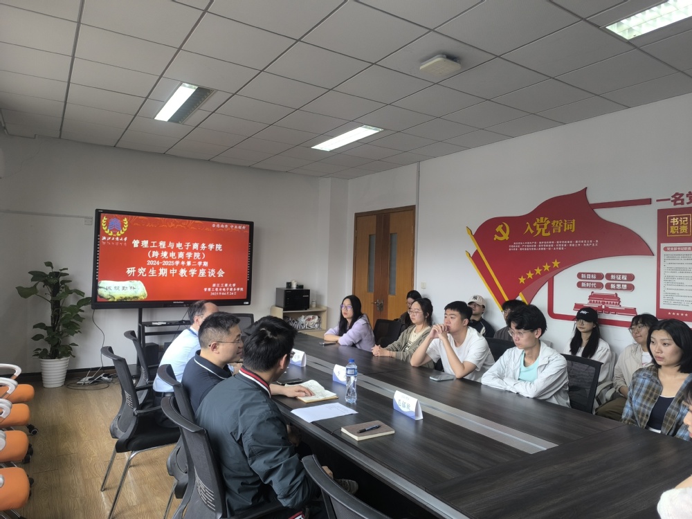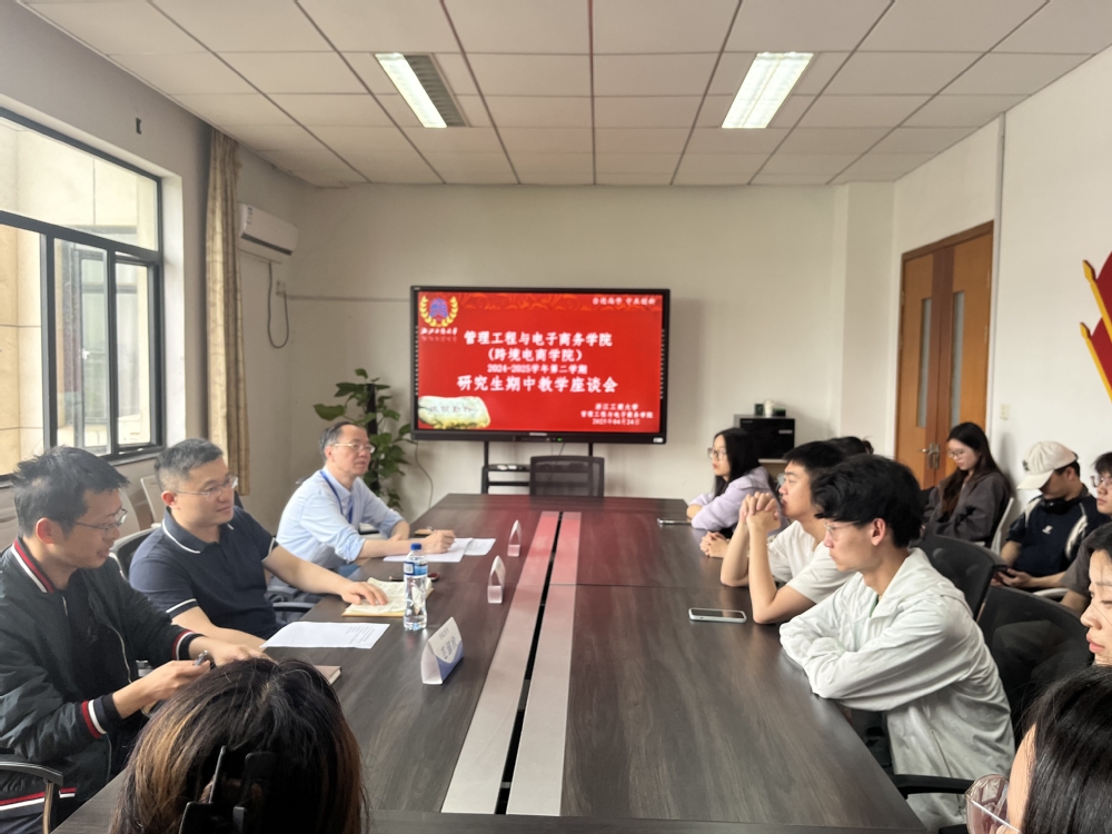 为了进一步提高研究生教学质量,了解学生对学院研究生教学工作、管理服务等方面的意见和建议,及时发现并解决研究生教学和培养管理过程中存在的问题,4月24日下午2点到4点,管理工程与电子商务学院在信息楼524会议室组织召开了本学期研究生期中教学座谈会。座谈会由校级督导傅培华老师主持,学院研究生分管院长李进参加,学院教学督导毛郁欣老师出席会议,研究生教务秘书浦瑛瑛老师记录。23级、24级共18名研究生出席。