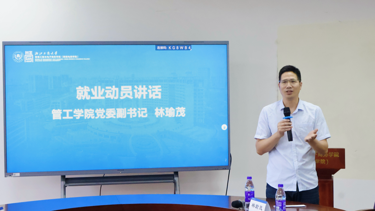 为帮助同学们明确就业方向、激发就业动力,6月11日上午,学院在信息楼510会议室召开2026届研究生就业动员会。学院党委副书记林瑜茂、学校招生与就业指导处尹天言、2025届浙江省选调生江向东应邀出席会议。2026届全体研究生通过线上线下相结合方式参加会议,会议由辅导员许东东主持。