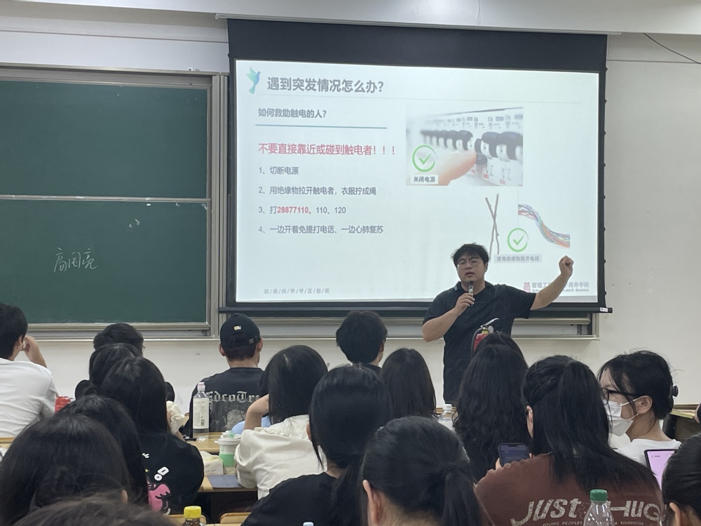 围绕“安全用电”这一常见风险点,培训内容涵盖了设备接地、插头插座规范、大功率仪器使用以及如何避免线路过载等实用知识。高老师特别提醒,严禁在实验室串接插排,离开时务必关闭电源。