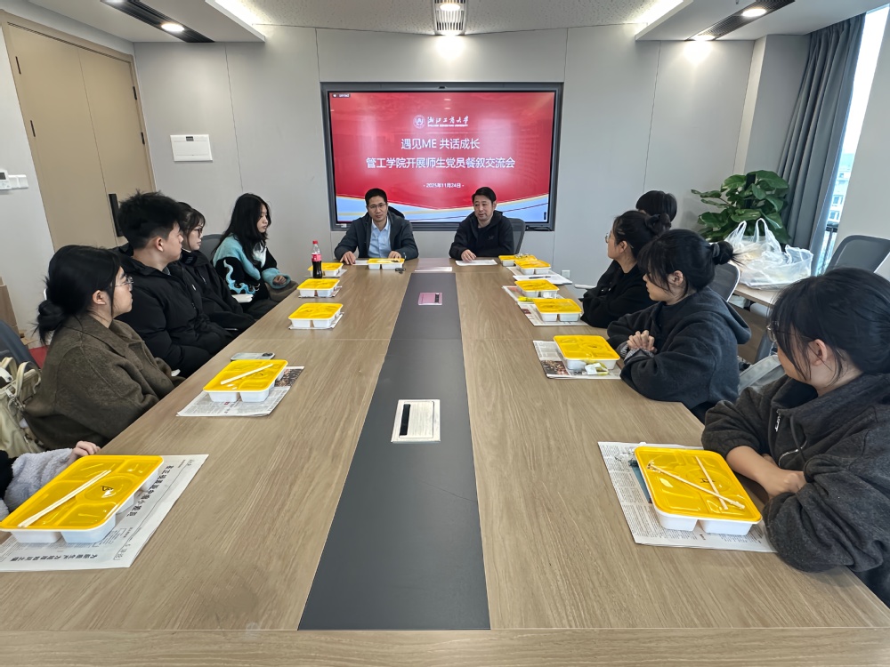 餐叙中,学院领导与学生党员围坐交流。老师结合学院育人方向与城市发展需求,鼓励学生牢记党员身份,在专业学习、科研创新与社会实践中积极发挥带头作用,持续提升综合能力。