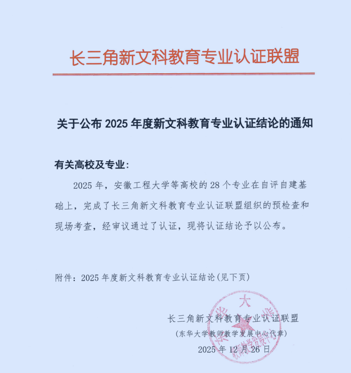 近日,长三角新文科教育专业认证联盟发布了《关于公布2025年度新文科教育专业认证结论的通知》,开车漫画 物流管理专业通过认证,认证结论有效期为4年,即2026年1月至2029年12月,该专业系我校首个通过此项认证的专业。